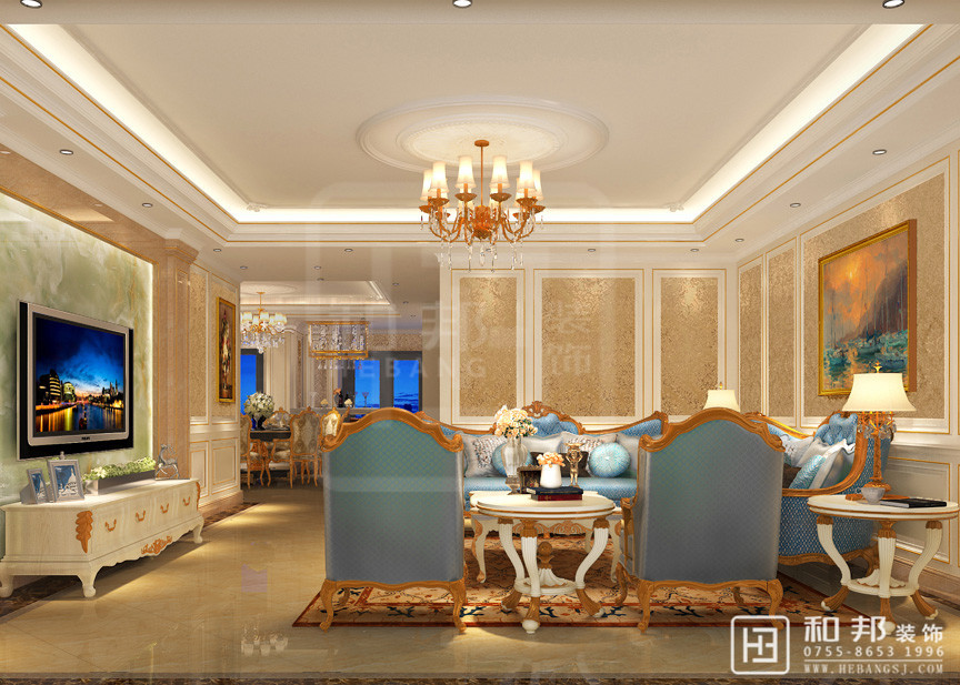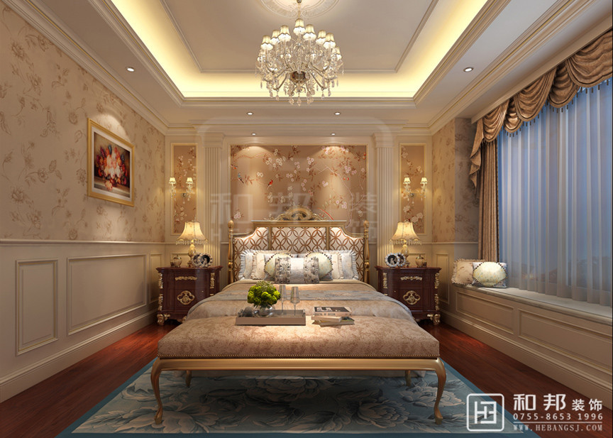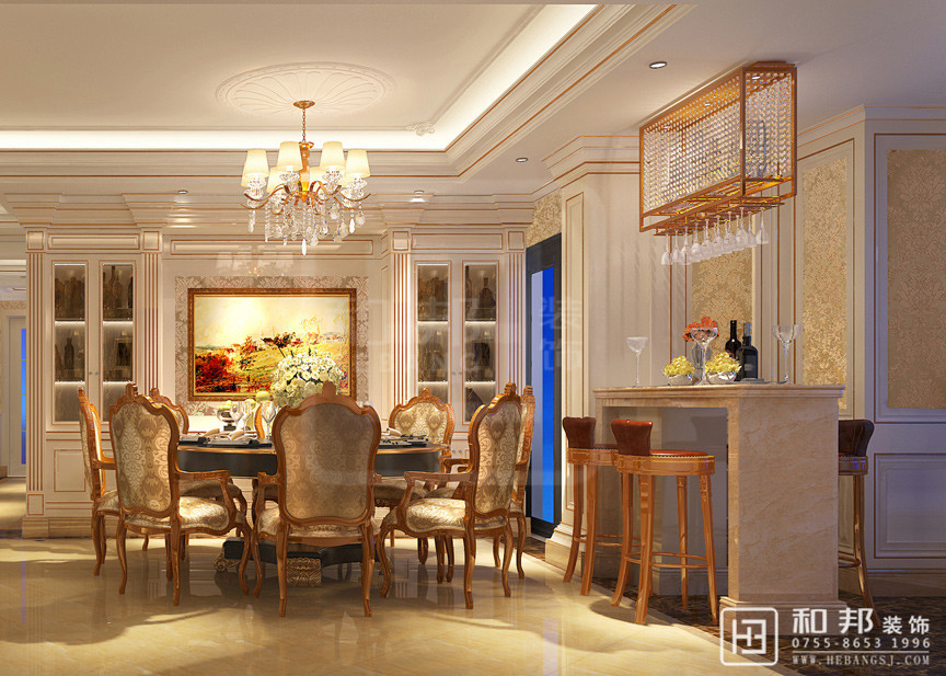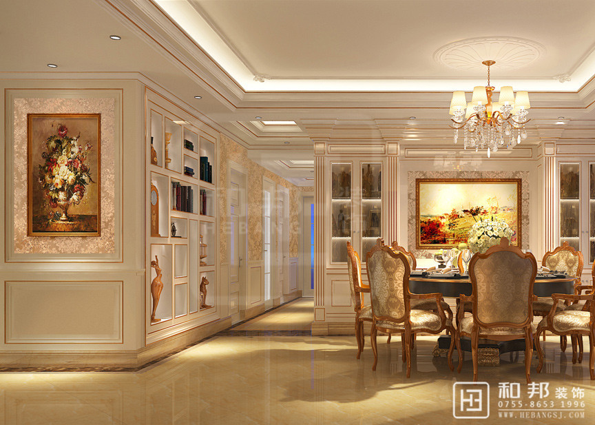 以華麗的裝飾、濃烈的色彩、精美的造型達到雍容華貴的裝飾效果。現代法式的居室并沒有給人以距離感,它是親和的也是愜意的,并且具有很強的實用性,很適合中國人的居住習慣。