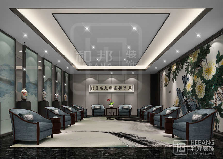 以華麗的裝飾、濃烈的色彩、精美的造型達到雍容華貴的裝飾效果而現(xiàn)代的辦公場所并沒有給人以距離感,它是親和的也是愜意的,并且具有很強的實用性。