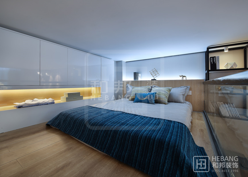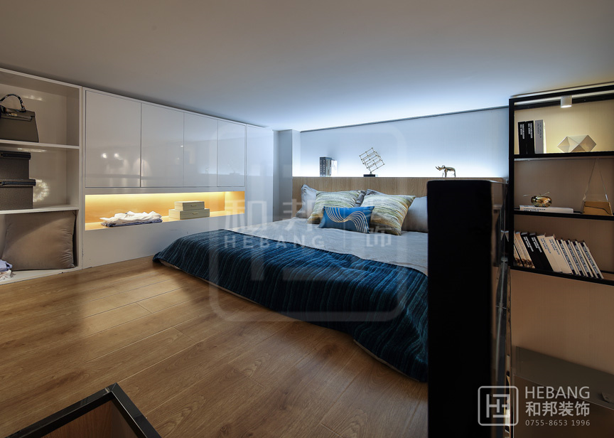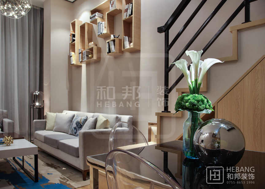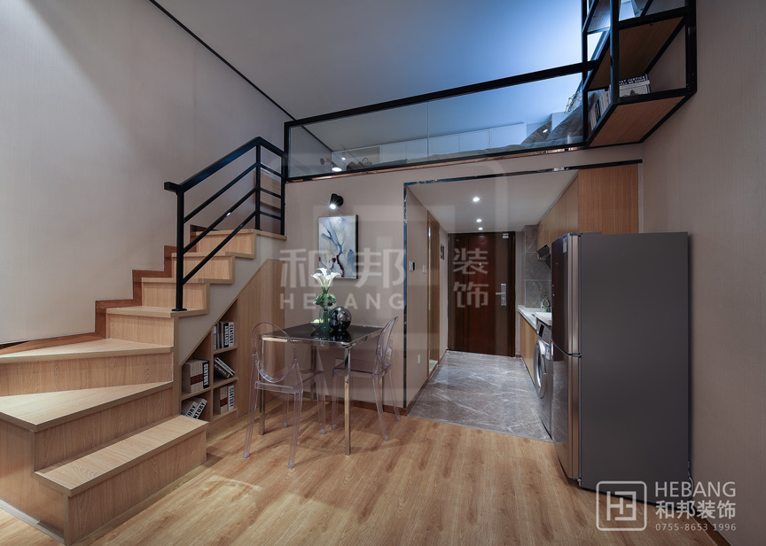 Loft公寓借助其層高的優(yōu)勢,可以盡情的對其空間進行分割利用。設計注重輕裝修重裝飾,從軟裝入手提升樣板間的空間體驗,借用樓梯增強收納空間,簡約和靈動空間能給許多年輕人舒適自由