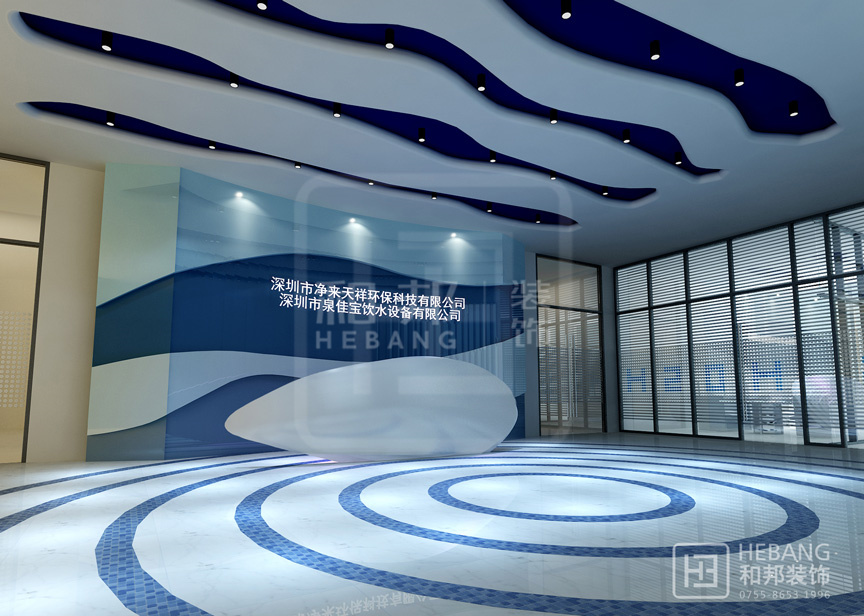 本案以水元素貫穿設計前后,立面設計簡潔大方,利用藍白色調(diào)配合流線型的設計外觀,給人一種不同尋常的視覺體驗,充分體現(xiàn)出了案例公司的性質(zhì),在原有的基礎上加了不少的分。