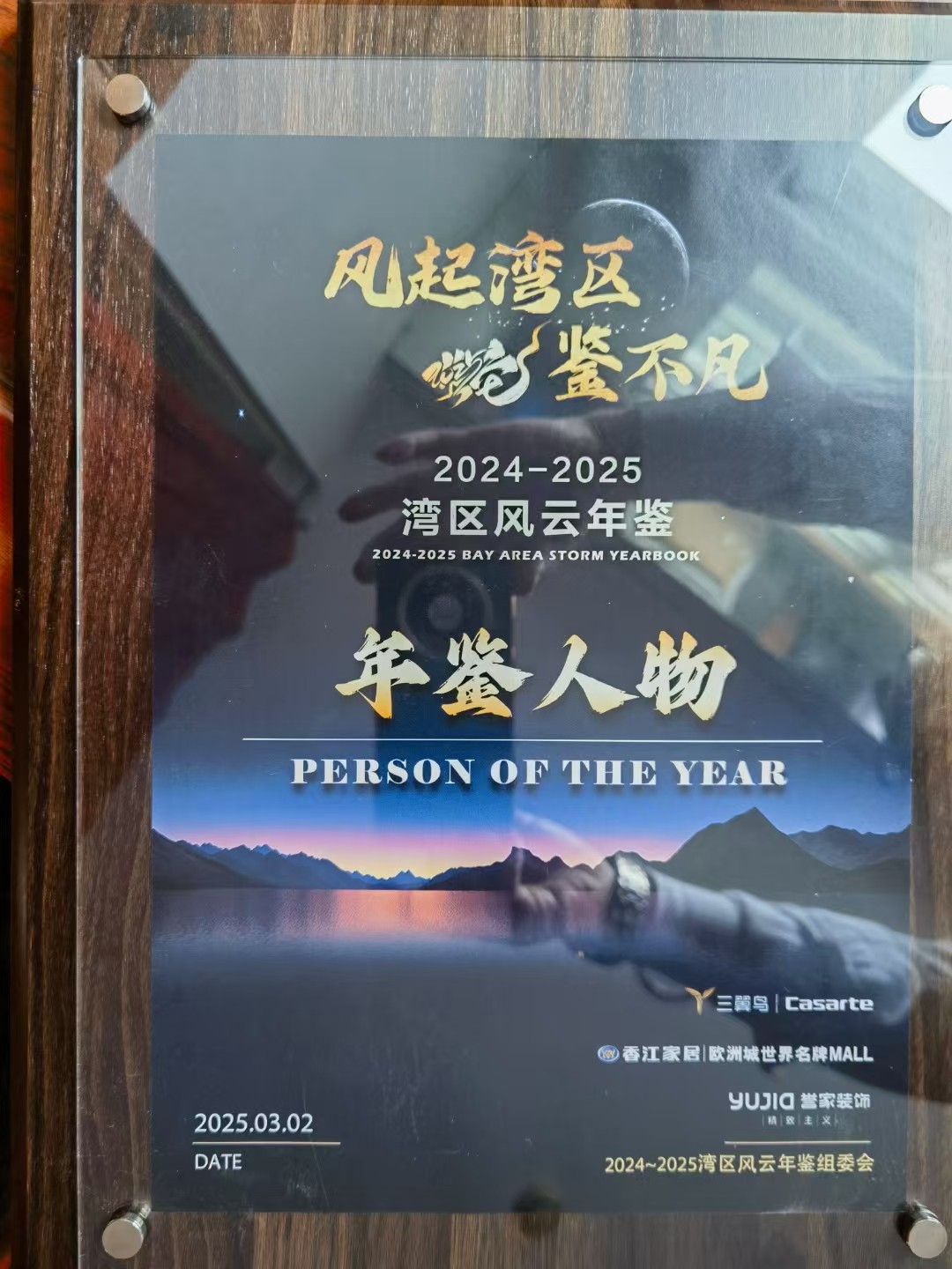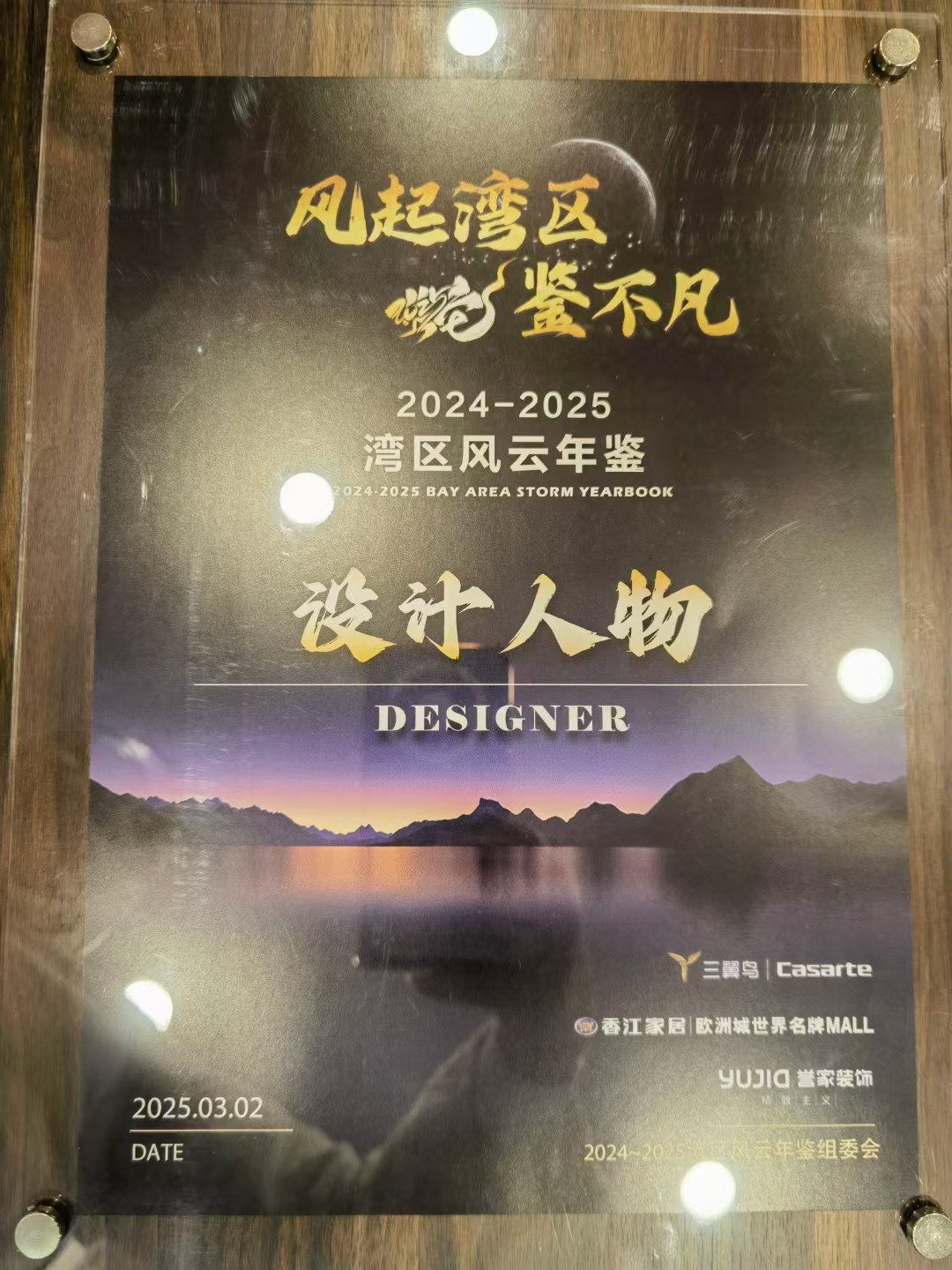 2025 年 3 月 2 日,【風(fēng)起灣區(qū),鑒不凡】2024-2025 年灣區(qū)設(shè)計(jì)風(fēng)云年鑒系列活動(dòng)在深圳盛大啟幕,和邦裝飾創(chuàng)始人劉擁軍受邀出席,憑借在設(shè)計(jì)領(lǐng)域的深厚積淀與突出貢獻(xiàn),一舉斬獲 “年鑒人物” 與 “設(shè)計(jì)人物” 雙項(xiàng)榮譽(yù)稱號(hào),成為現(xiàn)場(chǎng)焦點(diǎn)。
